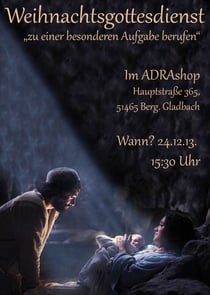 "Zu einer besonderen Aufgabe berufen" - unter diesem Titel fand der diesjährige Heiligabendgottesdienst statt. Die Geburt von Jesus aus der Sicht Marias - das war einmal ein ganz anderes Erleben der Weihnachtsbotschaft. Durch Kristins tolle schauspielerische Leistung fühlte man sich der jungen Maria mit ihren Gedanken und Empfindungen sehr nah. Den Gedanken, dass jeder von uns zu einer besonderen Aufgabe berufen ist und auch Gottes Hilfe dazu erhalten darf, vertiefte Adrian Rebega in seiner Predigt. Als Abschiedsgeschenk und Erinnerung an das Thema wurden kleine Samentöpfchen verschenkt - damit die gute Saat in uns wachsen kann.