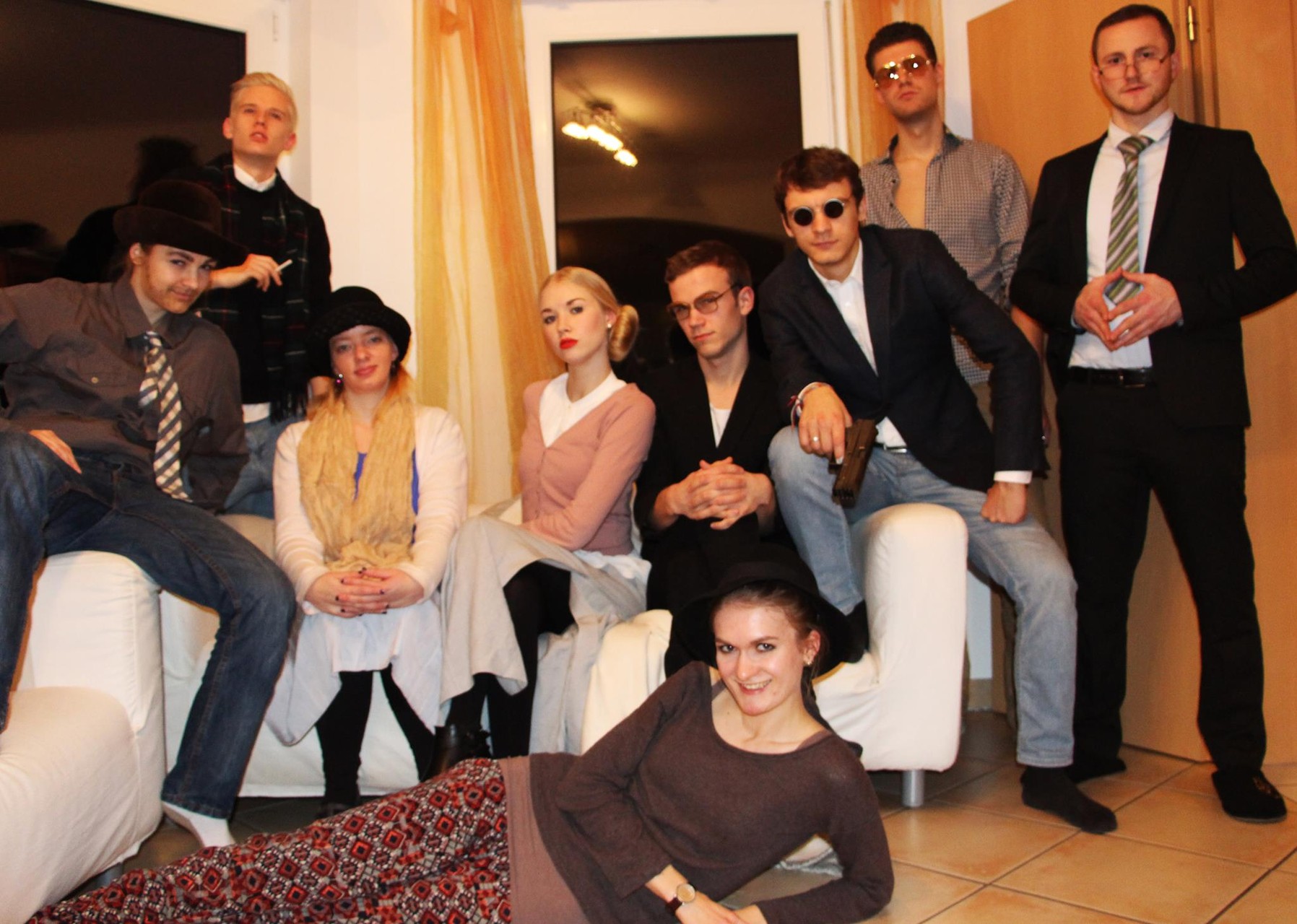 Mord im Theater - acht Verdächtige hatten die Möglichkeit, Manni den Bühnenmeister aus dem Weg zu räumen. Beim Abendessen nach dem Schock sitzen alle unter der Aufsicht des Kommissars beisammen und offenbaren teils schrecklicke Dinge. Wem stand Manni am stärksten im Weg?